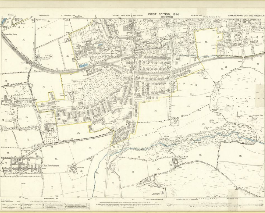 The City Poorhouse complex can be seen bottom left. The Lodge for admissions was along the 'Poorhouse Lane' at 144 Comiston Road